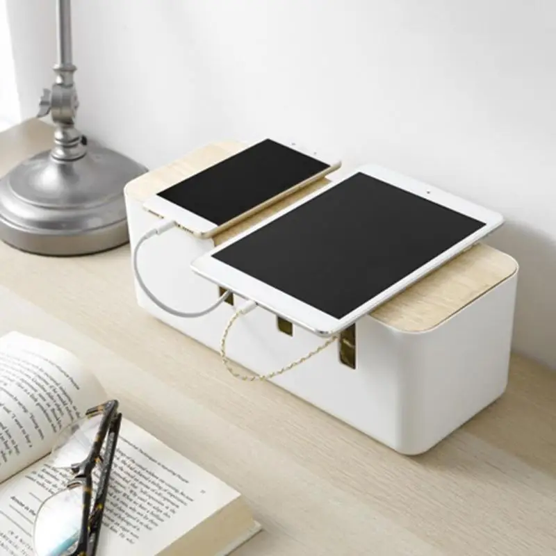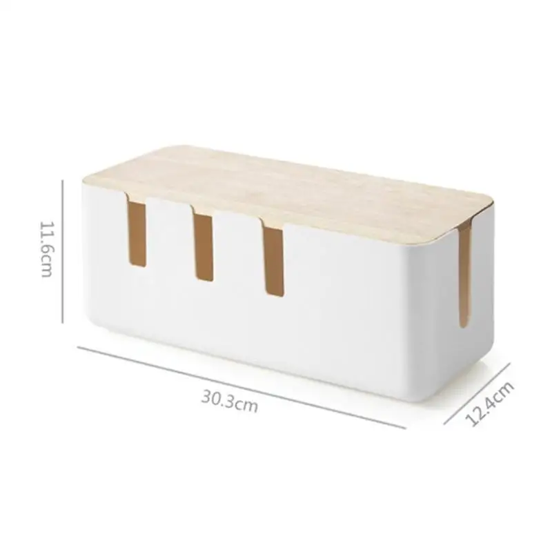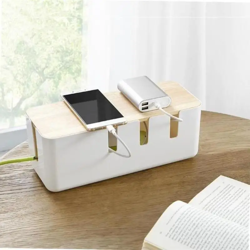HIGH QUALITY ABS Cable Storage Box with Wooden Cover Anti-dust Power Strip Wire Storage Case Network Line Deskto