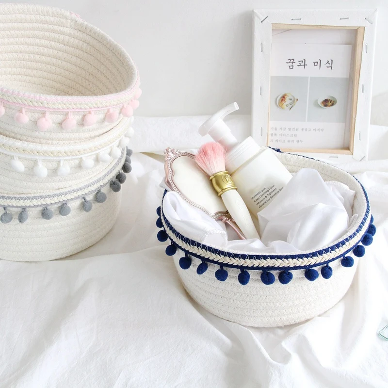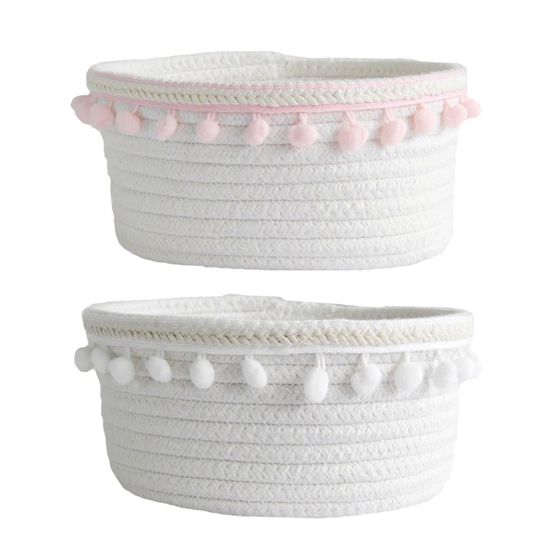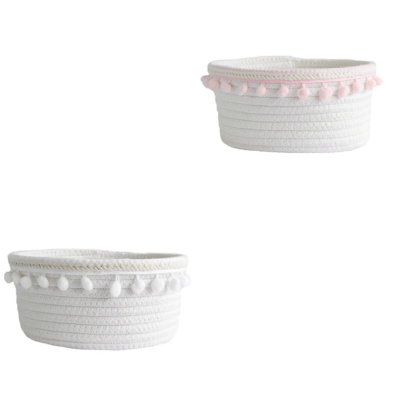 2Pcs Ball Cotton Rope Woven Storage Basket Desktop Cosmetics Storage Basket Nordic Style Debris Sto